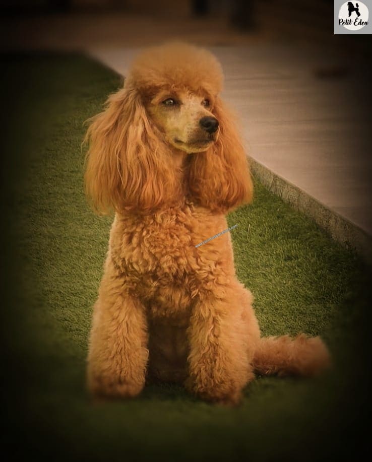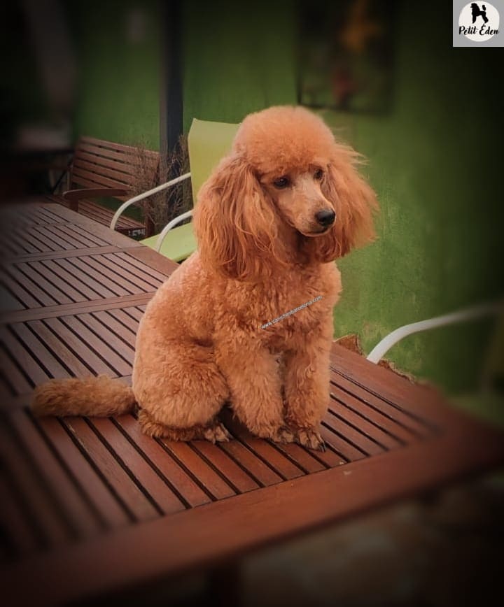 Caniche enana – 30 cm cruz – 5,1kg – Manto espeso y suave de color rojo anaranjado